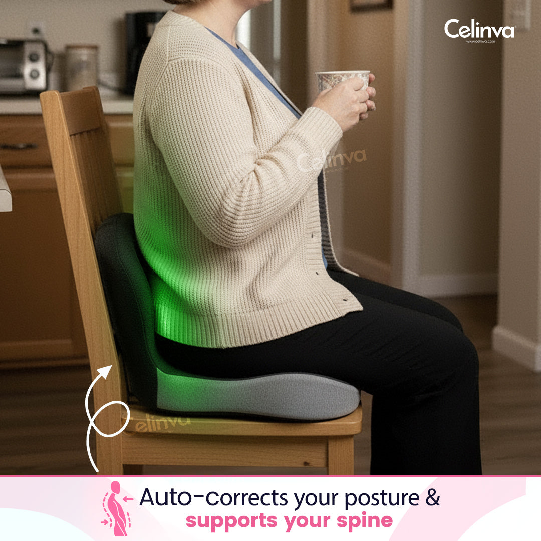 The Celinva™ Orthopedic Cushion is built differently. Its coccyx cut-out relieves direct tailbone pressure, while the contoured design supports your spine to restore healthy posture. High-density memory foam spreads weight evenly across hips and thighs, keeping blood flowing so your legs don’t go numb.
